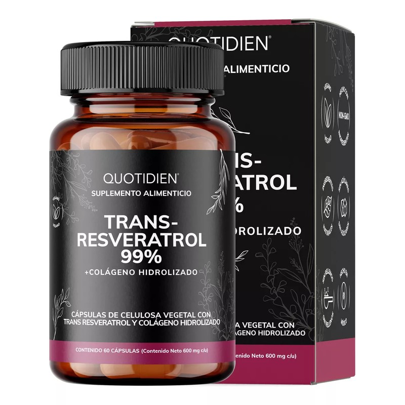 Quotidien | Trans Resveratrol 99% De Pureza Máxima Con Colágeno Hidrolizado Y Calcio - 60 Cápsulas Veganas Vcaps