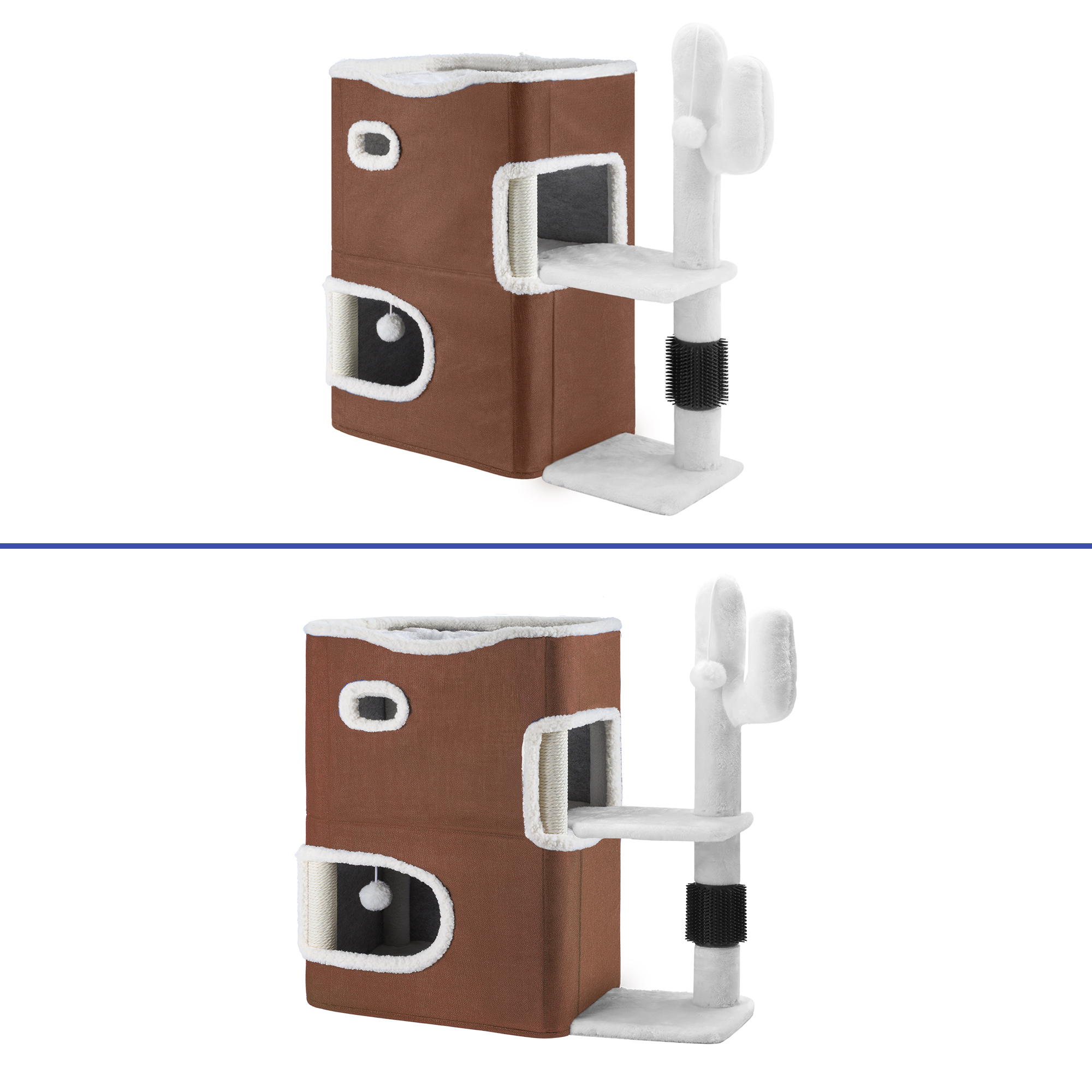 Qurious_Corner Comfortable Double Deck Dog & Kitty Pet Cage w/ Scratching & Itching Post 17x13"