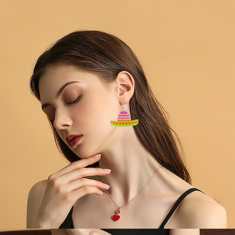 QUSIJIA Colorful Fiesta Drop Earrings Fiesta Party Sombrero Dangle Earrings For Women (hat)