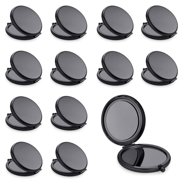 QUSTGO Compact Mirror, Pocket Travel Makeup Mirror for Purse, Metal Round Shell, 2-Sided 1X/2X Magnifying, Portable, Folding, Handheld, Black, 12 Pack