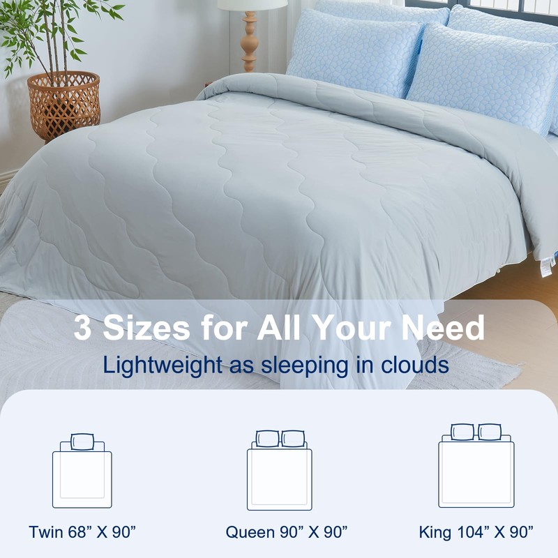 • TAKE CARE EASY – Crafted with a focus on high quality and durability, our cooling comforter blends ultra-softness with resistance to pilling and shedding. Expertly quilted to guarantee a smooth, wrinkle-free exterior, it offers a soothing hug that encourages relaxation for a serene slumber. Cleaning couldn't be simpler: just pop it in a laundry bag and wash in the machine with water under 30℃/86℉. Designed to maintain its color and texture, bleach and ironing are unnecessary. Note: To preserve its cooling properties, avoid drying; instead, hang it in a shaded area to air dry.