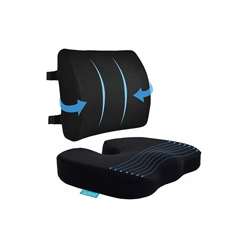 Qutool Seat Cushion & Lumbar Support Pillow For Office Chair,Car,Whee