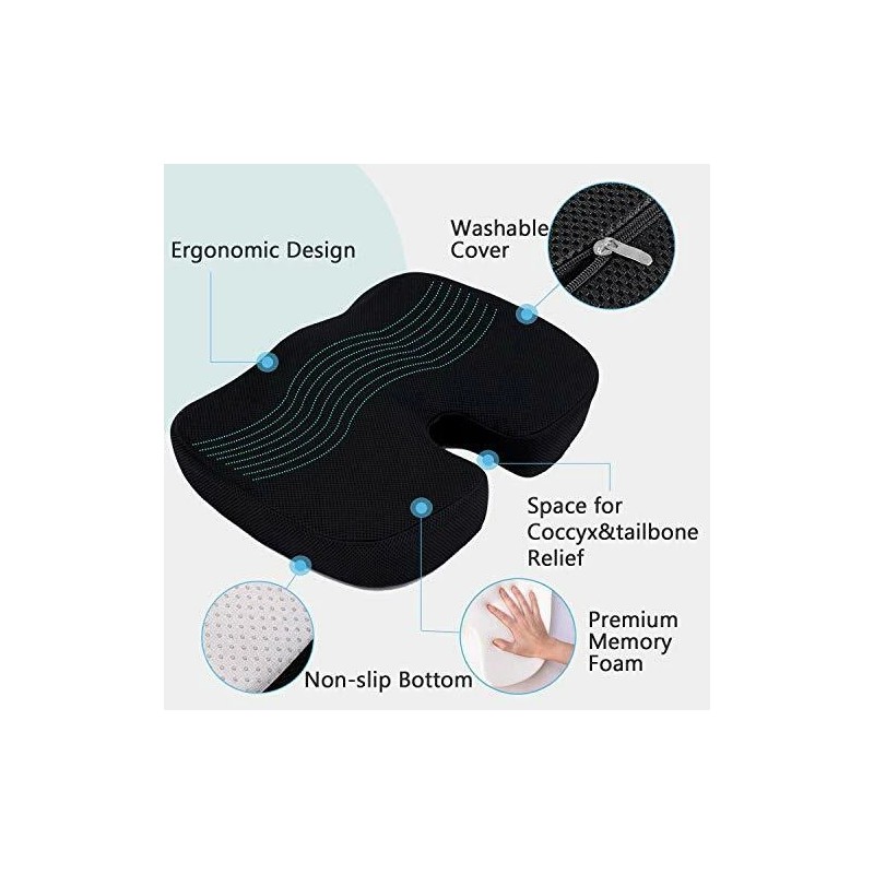 - Our desk chair cushion adopt U-shaped ergonomic designed by alleviating pressure on the coccyx / tailbone and relieving Sciatic Nerve Pain or Sciatica, Low Back, Lumbar, Tailbone, Prostate, Hip, Piriformis, Spine, Leg Pain, Backaches, Hemorrhoids, and post surgery or pregnancy pain relief.