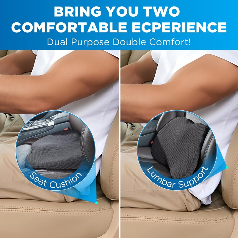 - ONE PILLOW FOR TWO PURPOSES The wedge pillow can be used in two different ways. As a car seat cushion, the car cushion is thin at the front and thick at the back and supports the hips while your legs can move easily. As a lumbar support; it not only fills the gap of the car seat, but the slightly raised design in the middle also provides lumbar support