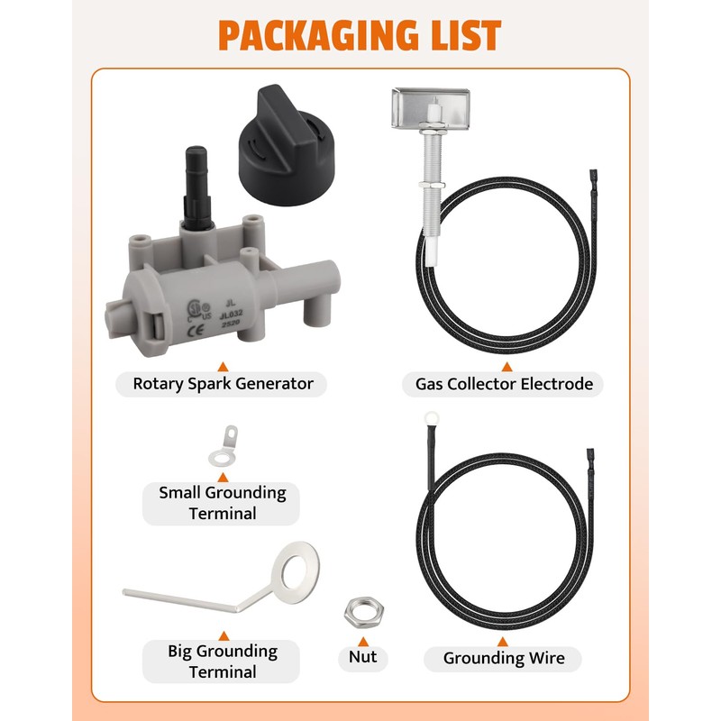 - Complete Replacement Kit: Rotary spark generator, control knob, gas collector box electrode assembly with 15-inch igniter wire and ground wire, and screws