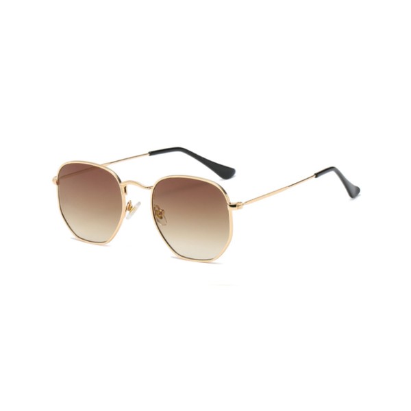 QVKUUT Retro Polygon Sunglasses for Men and Women, Gold/colour gradient brown