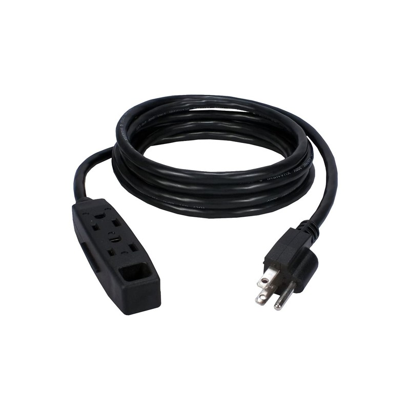 - Power strip provides three 3 prong outlets and extends existing cable length by 25'