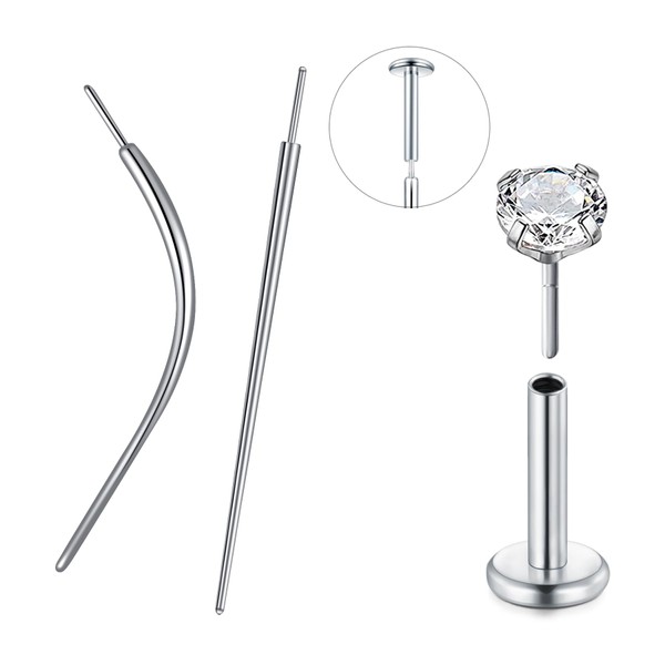 QWALIT Piercing Taper Threadless Piercing Changing Tool Piercing Taper Insertion Tool Piercing Threader Tool Flat Back Earring Applicator Tool Threadless Labret Titanium Threadless Insertion Pin 18g