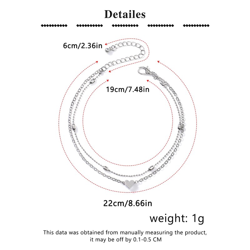 - [Measurements]: Adjustable toe rings for women; Diameter Range: 1.4cm-1.8cm=0.55in-0.7in. Silver anklets with beads perimeter : 19cm+6cm=7.48in+2.36in, heart anklets perimeter : 22+6cm=8.66in+2.36in