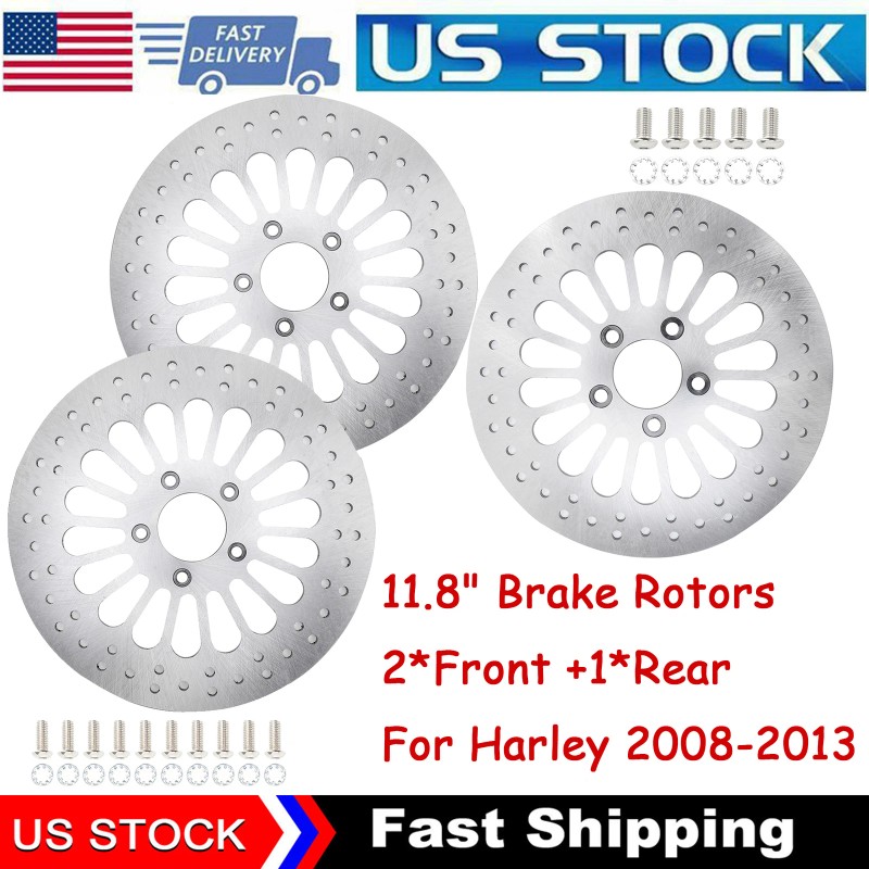 qwee-8 11.8" Brake Rotors 3pcs 2Front+1Rear Super Spoke 2008-2013 For Harley