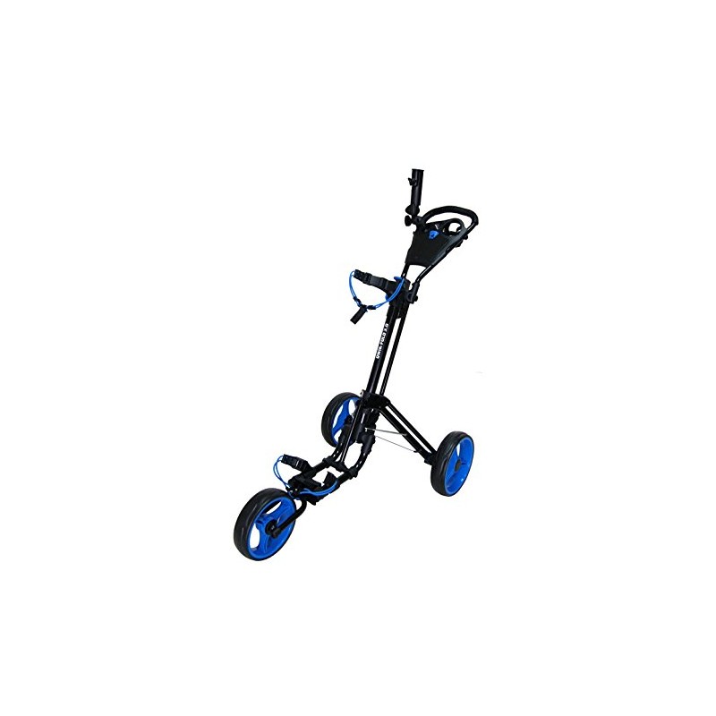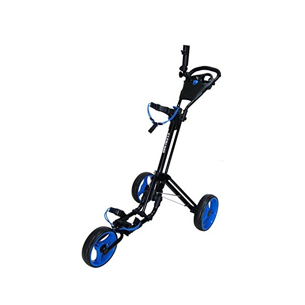 Qwik-Fold 3 Wheel Push Pull Golf CART - Foot Brake - ONE Second to Open & Close! (Black/Blue)