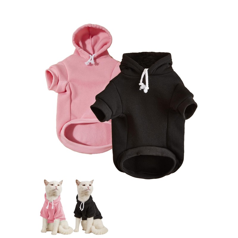 QWINEE 2Pcs Basic Dog Hoodie & Cat Apparel - Dog & Cat Jacket, Shirt & Clothes for Puppy & Kitten - Small to X-Large - Black & Pink