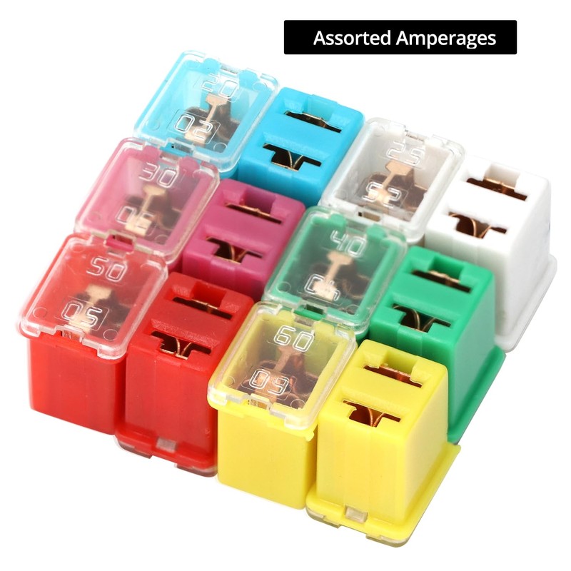- Package Includes: In this set it includes 12 flat fuses, 2 fuses per amperage , 20A/25A/30A/40A/50A/60A.