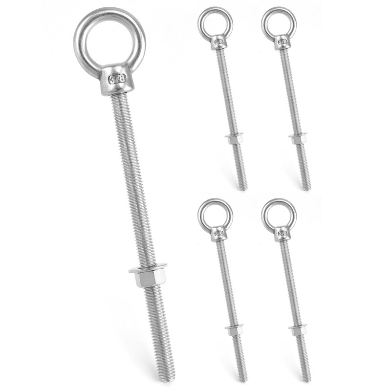 QWORK 316 Stainless Steel Machinery Eye Bolt with Shoulder, 5 Pack 3/8" x 6" Long Stainless Steel Marine Grade Shoulder Eye Bolt, Threaded Eyebolts, WD30279