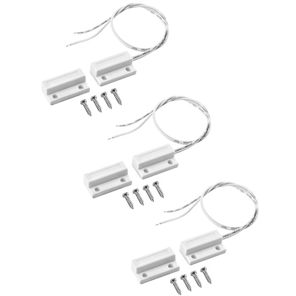 QWORK® 3Pcs MC-38 Wired Security Window Gate Contact Sensor Alarm -Normally Open - Surface Mount Magnetic Reed Switch Magnetic Door Sensor