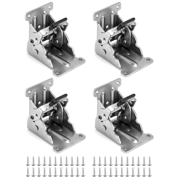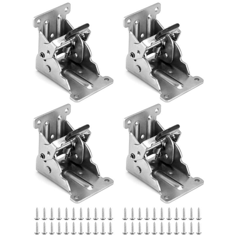QWORK® 4 Pack Folding Lock Extension Self Locking Foldable Hinge Hardware for Table Bed Leg Feet Screws Included - Silver