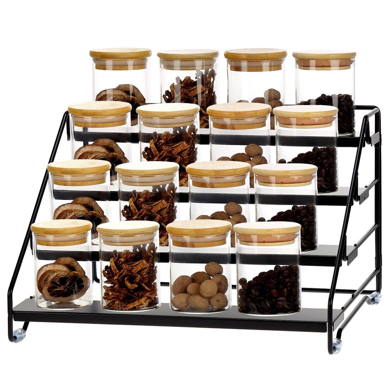 • 4-tier stepped design holds up to 48 spice jars, enhancing vertical storage efficiency.