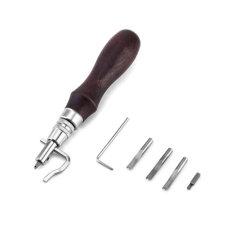 QWORK® 7-in-1 Leather Tool Set, Adjustable Groover and Leather Edges Cutter for Leather Sewing Crafts