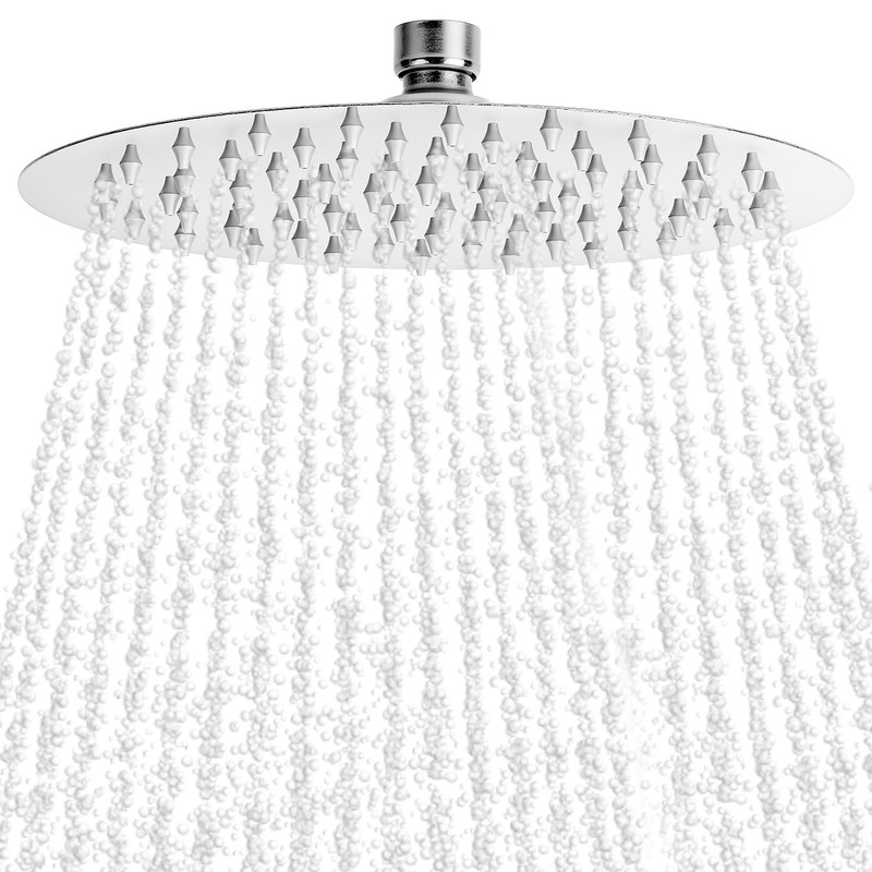- Experience high-pressure rainfall with this 8-inch round shower head made from 304 stainless steel.