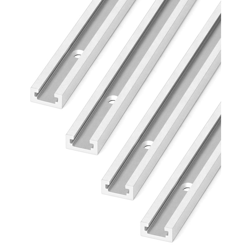 QWORK Aluminum T Track, 4 Pack 36 Inch Universal Double Cut Profile T Track, with Predrilled Mounting Holes and Screws, Woodworking and Fixtures, for Drill Press Table, Router Table