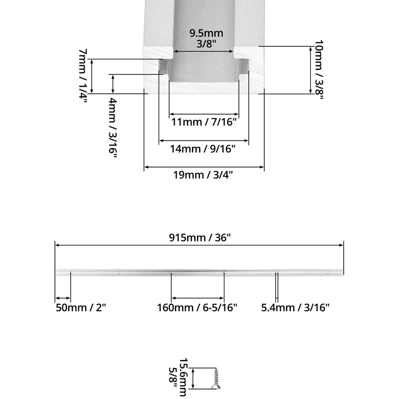 - Size: Each track measures 36"L x 3/4"W x 3/8"D, which is designed to fit 5/16", 1/4" T-Bolts and 1/4" Hex Bolts.