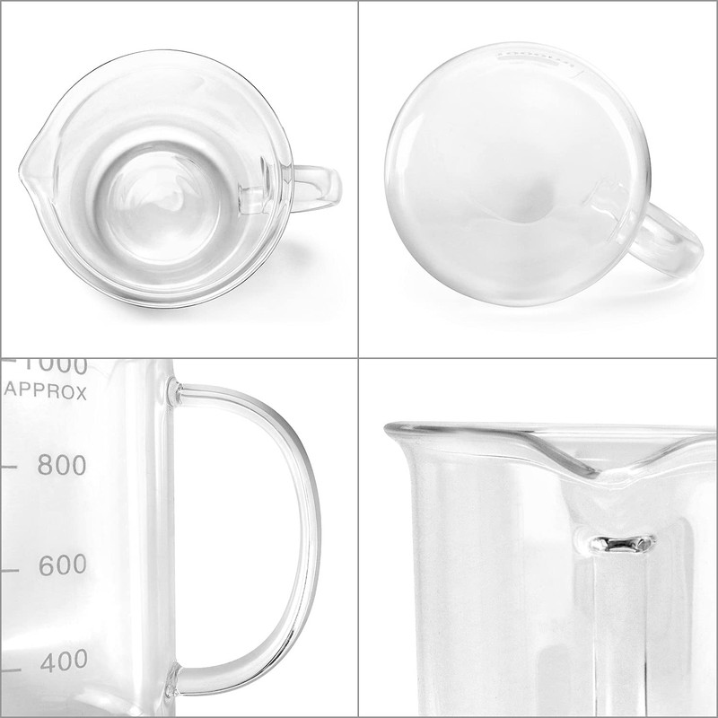 QWORK Beaker with Handle, 1000ml/33.81oz Measuring Cup, Borosilicate Glass,Beaker Mug with Pouring Spout