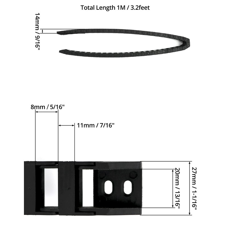 QWORK® Cable Drag Chain, Black Cable Wire Carrier Drag Chain Plastic CNC Machine Tool 10mm x 20mm
