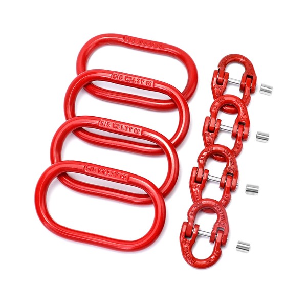 QWORK Chain Link Connectors Set, 4 Set 3/8" 7100 lbs Hammer Lock and 2 Pcs 5/8" 6600 lbs Oblong Master Link, Grade 80 Steel, Red
