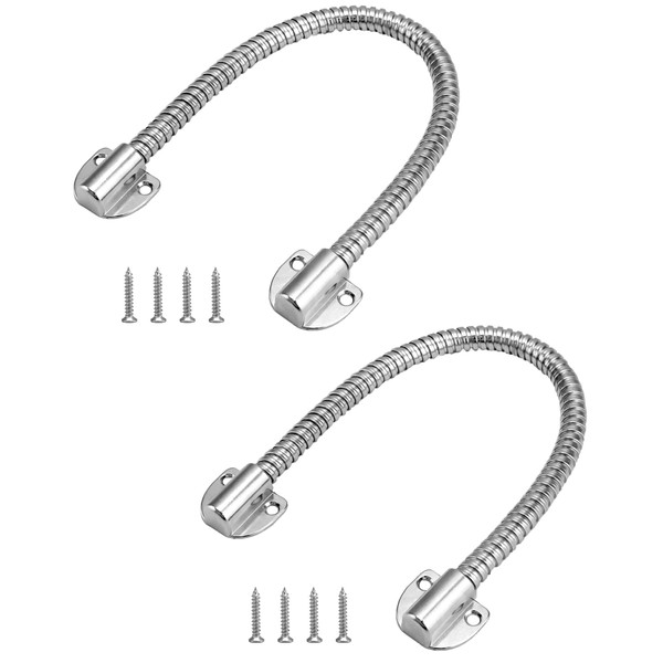 QWORK Door Loop Wire Protector, 2 Pack Steel Flexible Armored Door Cord with End Cap, (16" Long,1/2" OD, 3/8"ID)