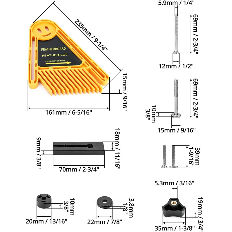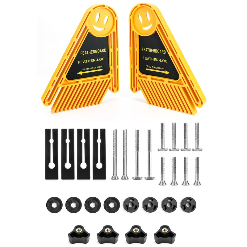 - The feather boards are made from a high-tech polymer and each has 13 angled fingers that apply even pressure and produce cleaner cuts with less chance of kickback, chattering or lifting.