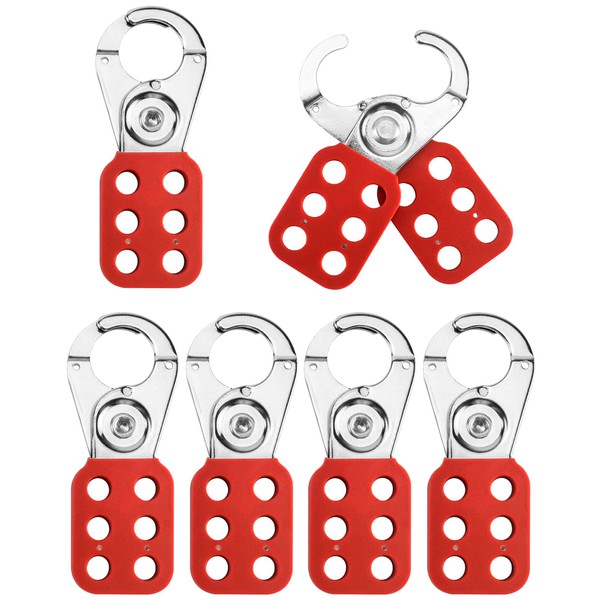 QWORK Lock Out Tag Out Hasp, 6 Pack Tamper-Proof Stainless Steel Padlock Hasp with Extended Jaw, Red