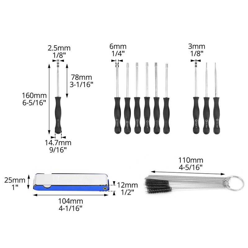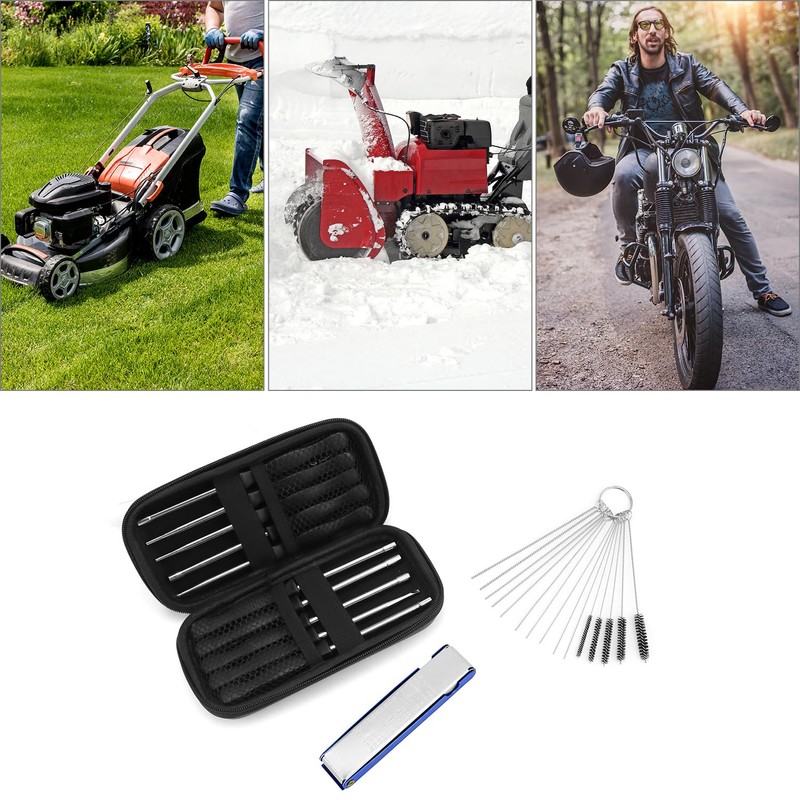 - Comprehensive 10-piece tool set specially designed for carburettor adjustment on small two-stroke engines.