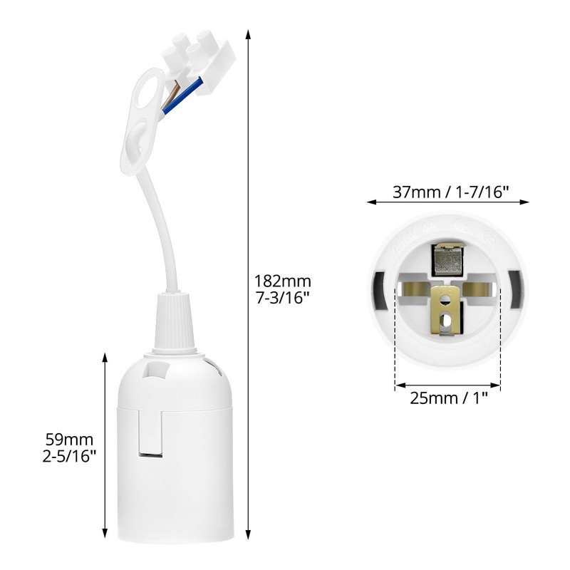 - Easy to Use The lamp holder with cable is easy to install, the cable is properly connected to the positive and negative pole, then connect the bulb.