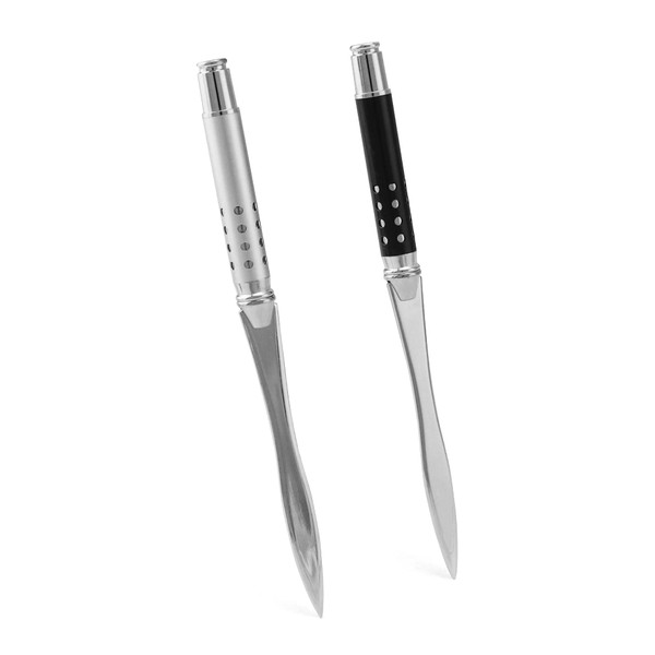 QWORK® Pack of 2 Letter Openers Sword – 16 cm – Effortless Post and Parcels Open, Silver and Black