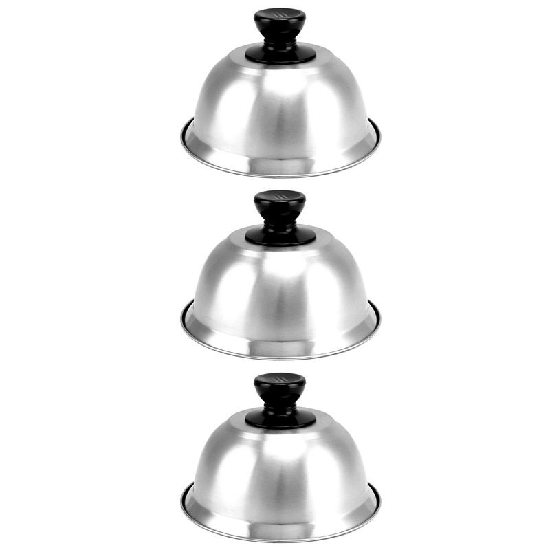 QWORK® Pack of 3 Burger Covers, Melting Dome, Stainless Steel, 16 x 10 cm, For Burger, Steak