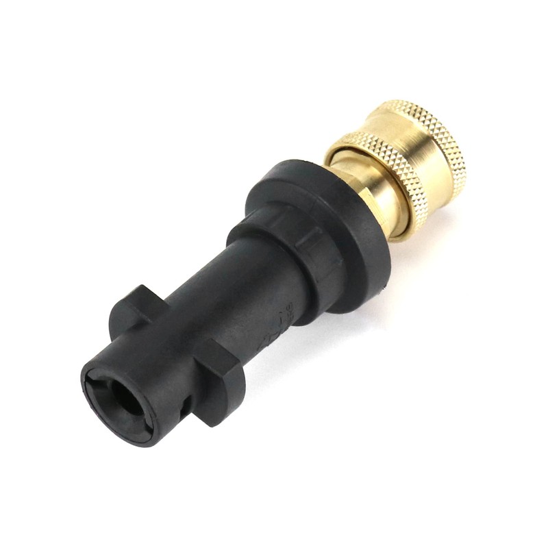 - Pressure washer adapter: converts the standard bayonet fitting on the end of the pistol to a 1/4" quick connect female fitting that accepts 1/4" nozzles or gun attachments.