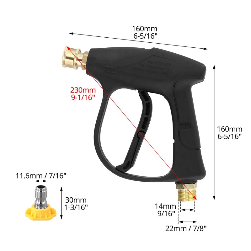 QWORK® Pressure Washer Gun with 5 Nozzle Tips, M22-14 Thread Inlet, 1/4 Inch Quick Connect Adapter, 4000 PSI
