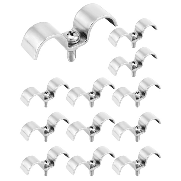 QWORK Stainless Steel Double Line Clamp, 12 Pack 5/8" Fuel Lines Clips with Mounting Screws