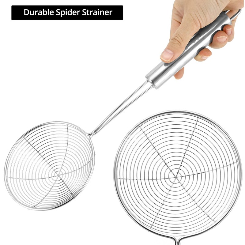 - Versatile Strainer: The included stainless steel spider strainer is ideal for a range of kitchen tasks. Use it to scoop spaetzle, noodles, dumplings, or retrieve fried foods like fish, French fries, and fried chicken.