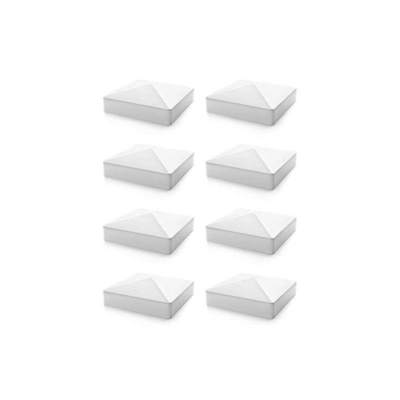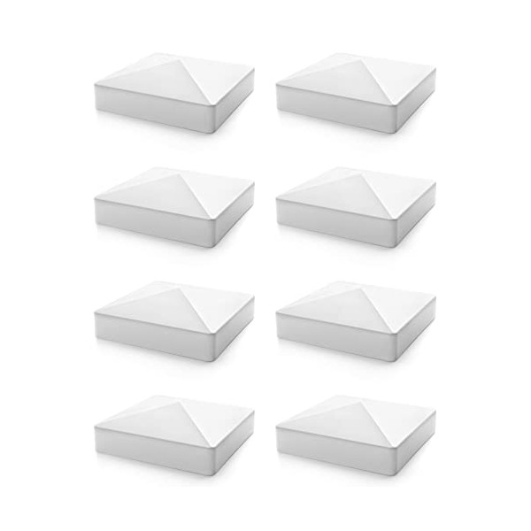 QWORK Vinyl Post Cap, 8 Pack 5" x 5" Vinyl Pyramid Fence Post Cap for Mailbox, Lamp Post, Deck, Dock, Piling Caps, White