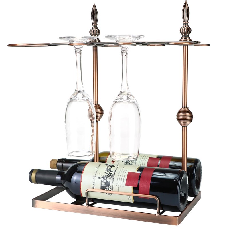 QWORK Wine Glass Holder Decanter Drying Hanger Wine Rack - Bronze, Holds 6 Glasses, 2 Bottles, and 1 Decanter