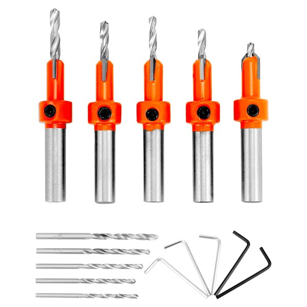 - Customizable and Convenient: Features a 5/16" round shank type and adjustable depth countersink bits, allowing for easy control of drilling depth; 2 included hex wrenches make adjustments quick and effortless.