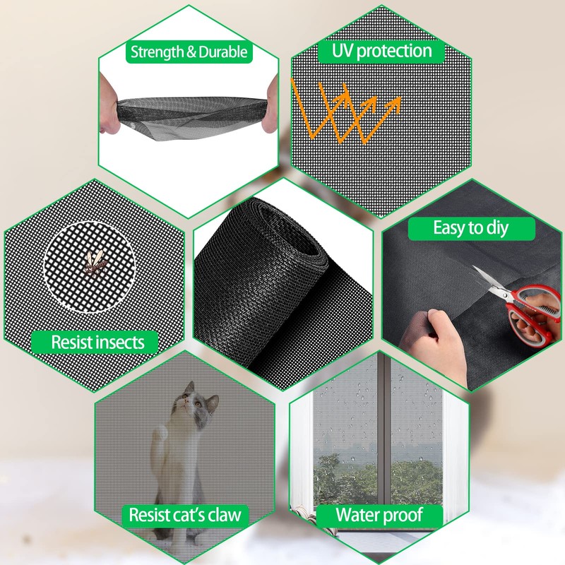 • 【Pet proof window screen replacement】The screen mesh is perfect for various kinds of screen doors, screen windows, sliding door screen, porch screen, patio screen, car window screen, pet screen,cat sliding door and other DIY screening applications.