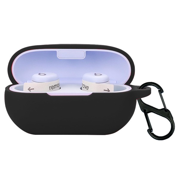 QWYJ for Beats Solo Buds Case Carcasa Protectora de Silicona, para Beats Solo Buds Funda con Mosquetón Llavero Anti-perdida (Negro)
