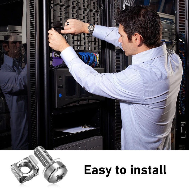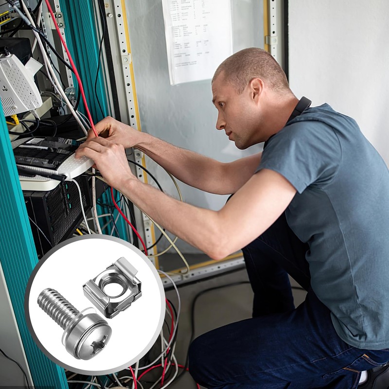 ✮ Cage nuts and screws are compatible with most racks and cabinets with square holes and are suitable for installing various server rack hardware, such as rack server cabinets, server racks, equipment enclosures, etc.