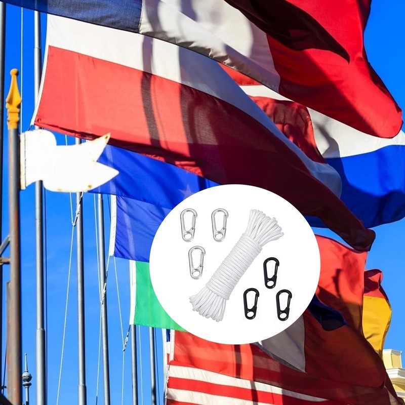 - Flag Rope Kit: The product includes a 16 meter flag rope and 6 flag clips. The 16 meter nylon flag rope adjusts to the size of your flagpole. The small flagpole hook clip is the perfect attachment for the flag rope. It is not only suitable for family use, but also for professional use.