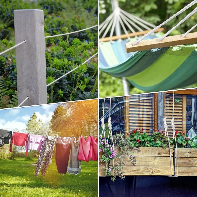Widely Used: Because our nylon climbing rope has high quality and performance, it can be widely used in flagpoles, outdoor clothesline, dog chains, camping, hammocks, swings, gardens, boats, anchor ropes, sun sails, cars or for tying things, supporting trees etc.