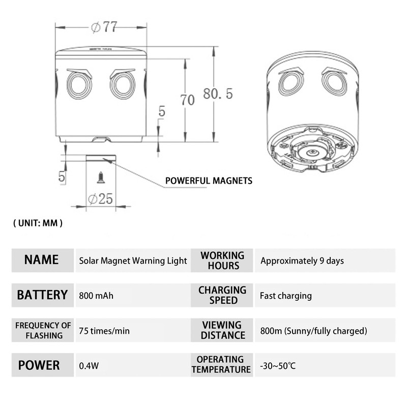 - 【FREQUENT FLASHING】Outdoor Solar strobe light flashes approximate 75 times/min , and the visual range is over 400-800m under the darkness.Note: This warning light can only be used in dark environment.