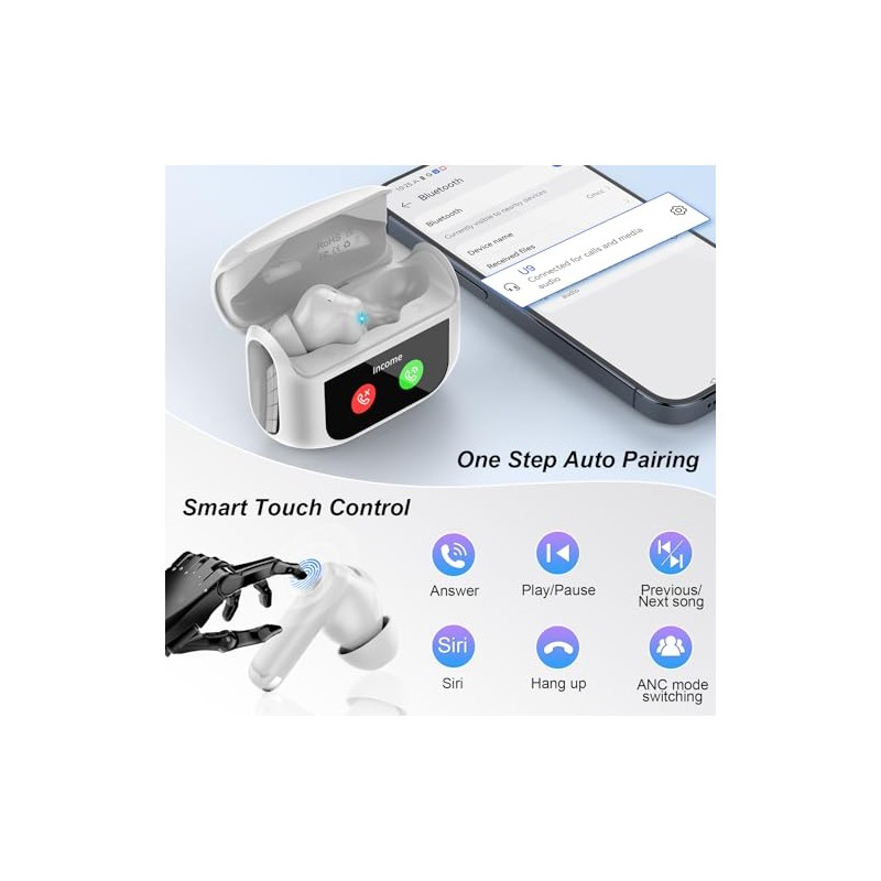 QXUFV QXUFV Wireless Earbuds, Bluetooth 5.4 Headphones Multi-Function Touch Screen with 5 EQ Modes, 48H Ear Buds Bass Stereo with ANC Noise Cancelling/Transparency Mode, IPX7 Bluetooth Earbuds, Pearl White