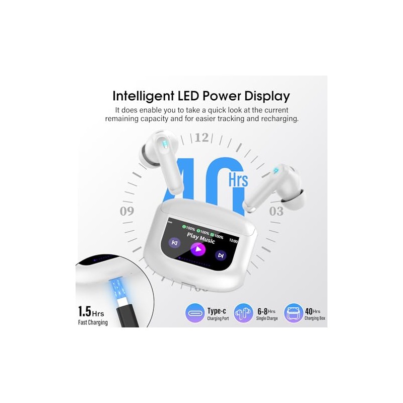 • Smart LED Touch Screen: U9 In ear wireless earbuds integrate intuitive touch controls on the charging case and both earbuds, simplifying the user experience. Just one tap to play/pause music, change songs, or answer/end calls, no other devices required. These wireless bluetooth headphones can quickly and easily connect to your iOS or Android device, providing seamless, uninterrupted use. The intelligent touch system makes every interaction convenient and technological.